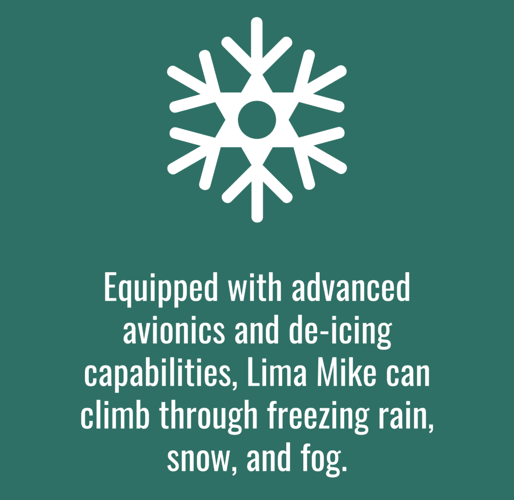 Lima Mike, a Beechcraft King Air B200, is the most utilized asset in LifeFlight’s fleet by hours flown. It can traverse Maine in most weather conditions, including those that ground the helicopter fleet in colder weather. It flies nearly twice as fast and is more efficient than LifeFlight’s helicopters over long distances. Particularly for the hospitals and patients in northern Maine who depend on the plane to swiftly connect them to the medical care they need, there is often no other option.