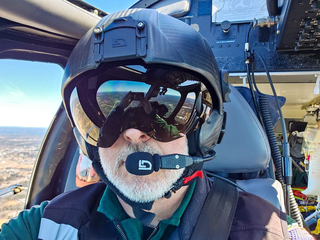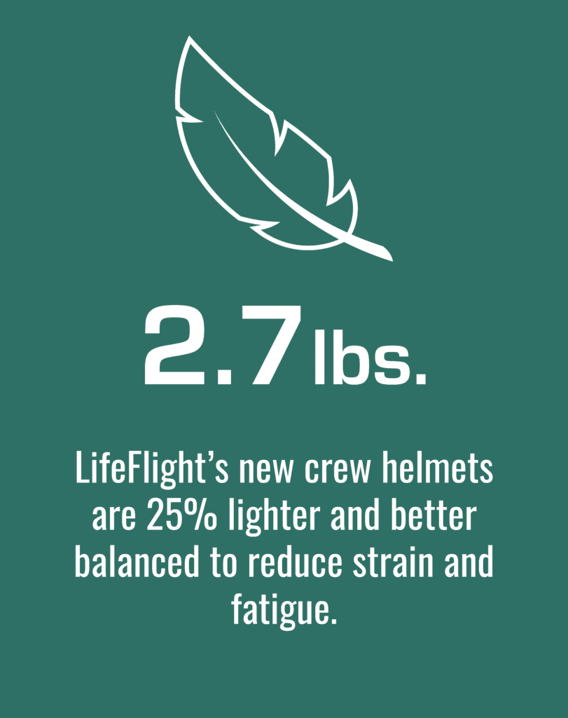 LifeFlight’s new crew helmets are 25 percent lighter and better balanced. The substantial difference reduces neck strain and fatigue.