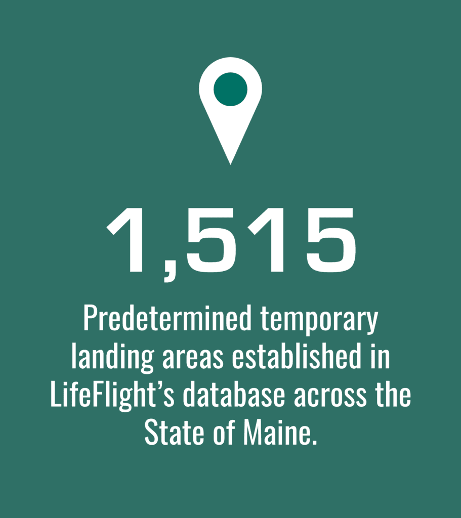 Over the years, LifeFlight has compiled a database to identify these locations across the state. These include, but are not limited to, athletic fields, roadside parking areas, rendezvous points along snowmobile and ATV trails, and small clearings deep in the woods.