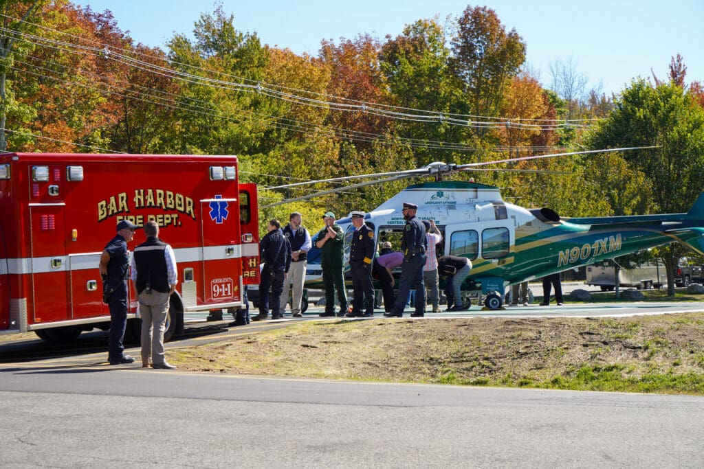 “Overall, the new permanent landing pad enhances the quality of care that all emergency medical service agencies can deliver to individuals when minutes and seconds count,” Matt Bartlett, the fire chief for the Town of Bar Harbor, said to those gathered for the dedication of the new helipad.