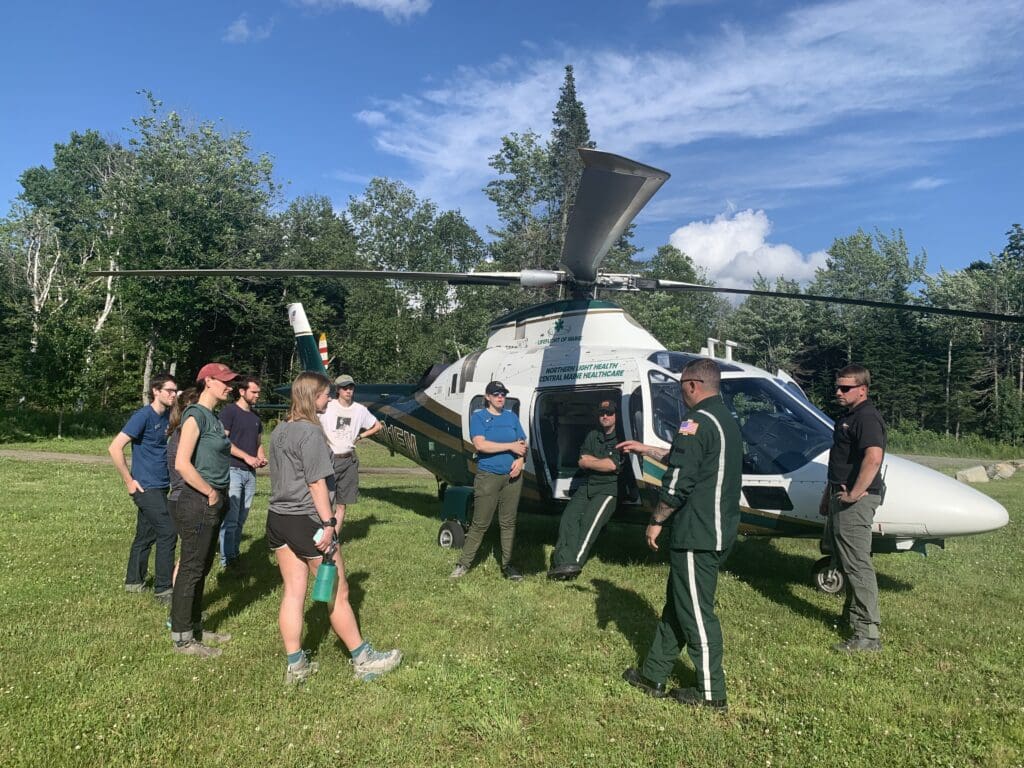 One of these new relationships is with the Maine-based ecolodges of the Appalachian Mountain Club (AMC), which recently convened AMC leadership from various Huts for LifeFlight’s Ground Safety Course. The course included a helicopter landing and was organized and facilitated by Kate O’Halloran, executive director of The LifeFlight Foundation, flight paramedic Paul Silva, rotor wing pilot TJ Wesoloski, and infrastructure engineer John Rolfson.