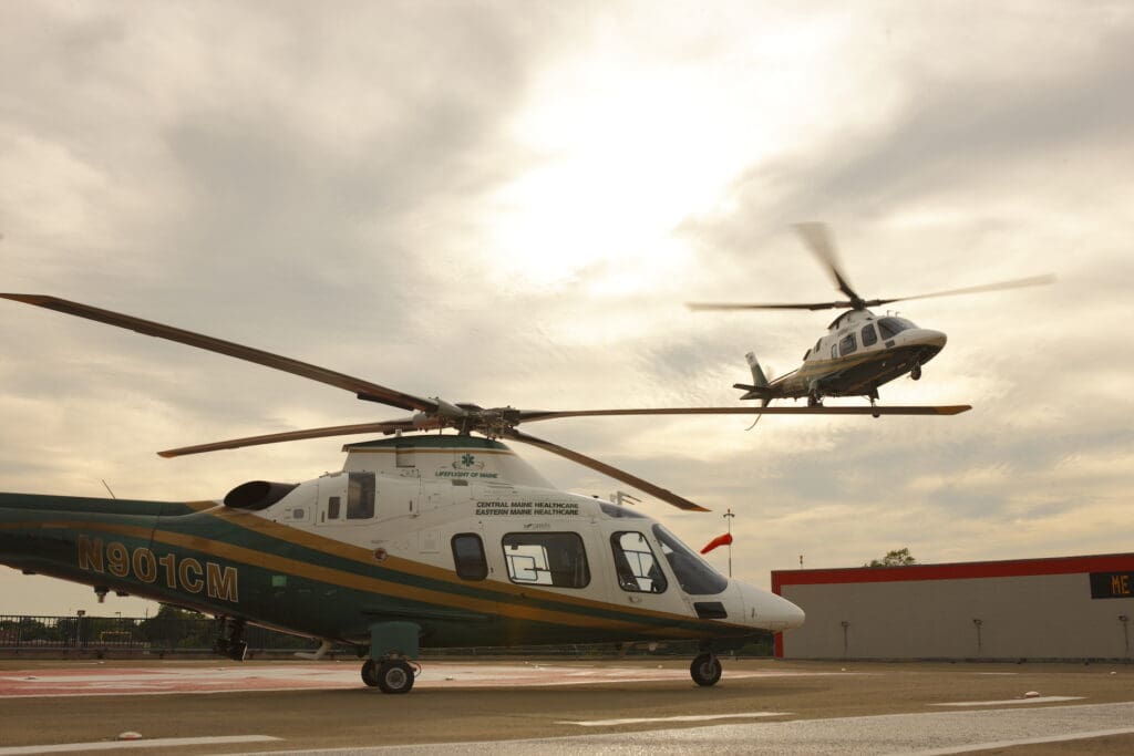 LifeFlight of Maine operates five A109 series light twin-engine Leonardo AgustaWestland helicopters.