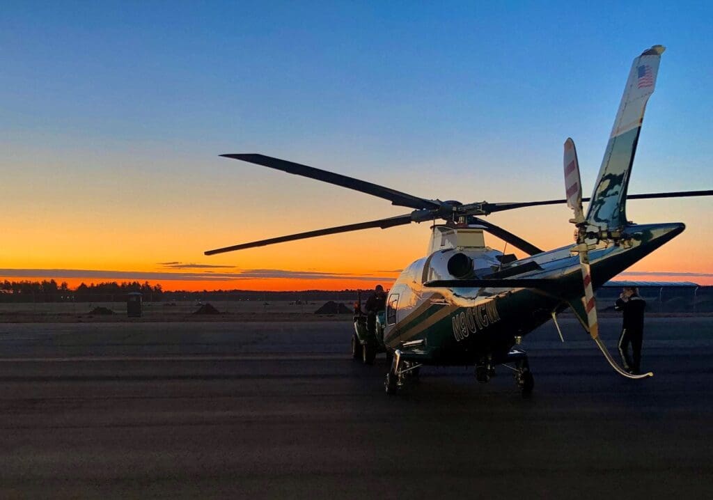 The SP helicopters travel at an average speed of 165 mph, making the trip from Bangor to Caribou in less than an hour. Our helicopters can fly for approximately 1.5 hours before refueling, depending on wind conditions and other factors.
