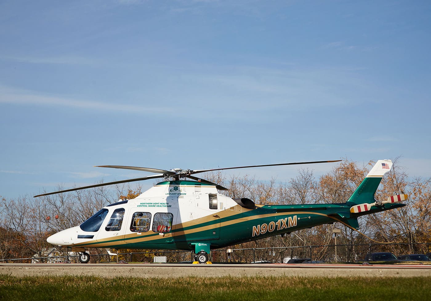 LifeFlight of Maine operates five A109 series light twin-engine Leonardo AgustaWestland helicopters.