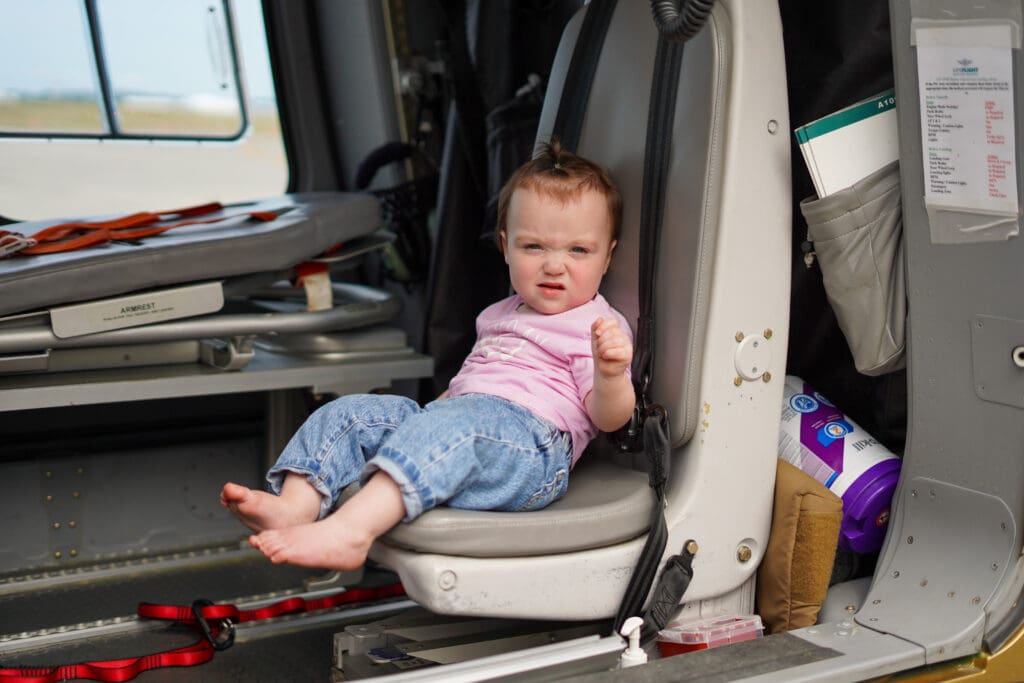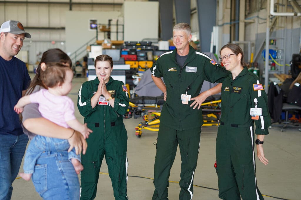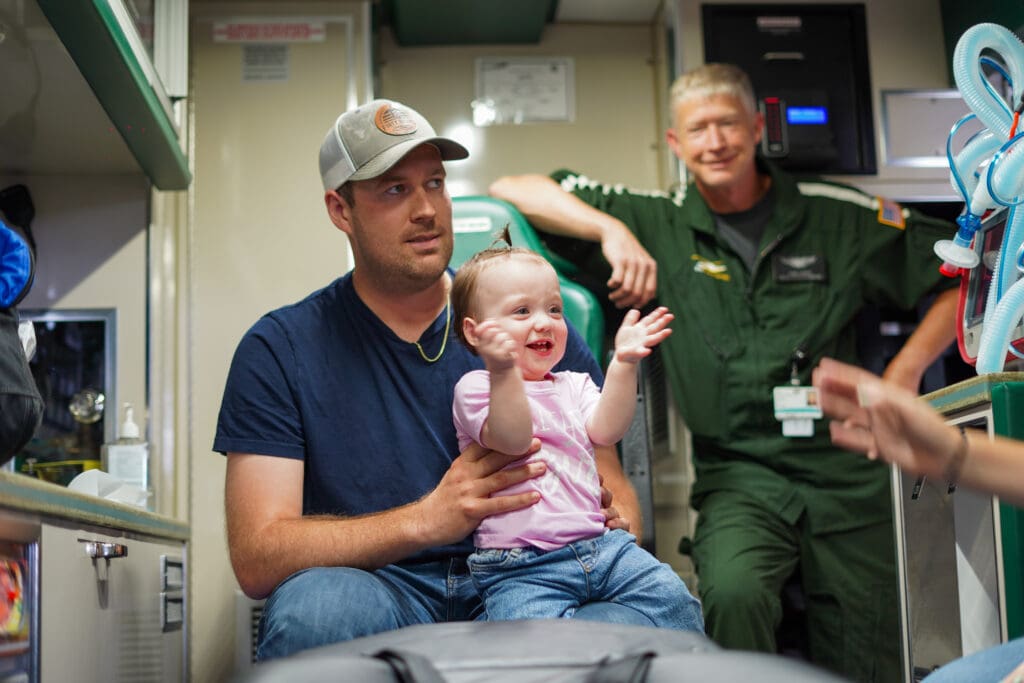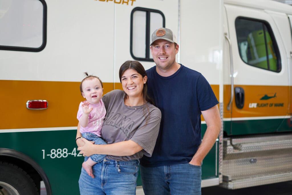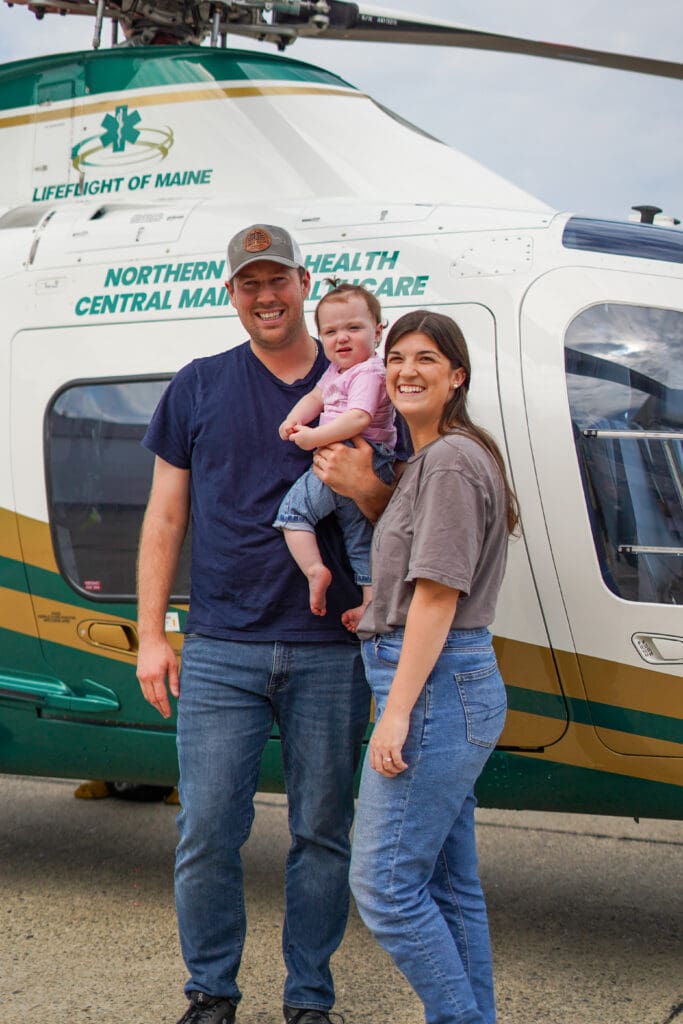 A year later, to celebrate Raelynn’s first birthday, the family returned to Maine to visit the LifeFlight crews who helped make the day possible.