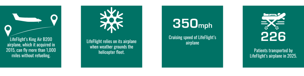 LifeFlight depends on the generosity of its donors and supporters to equip its fleet. In the colder months, our airplane is a lifeline for Maine communities when winter weather grounds our helicopter fleet. Our airplane was purchased with philanthropic support more than ten years ago, and its continued operation would not be possible without our generous donors.