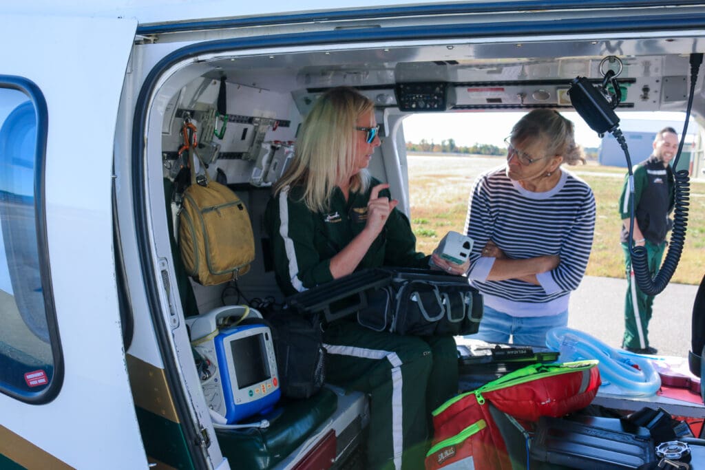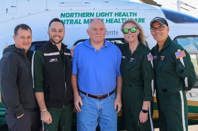 So, in early October 2025, just over a year after his flight crew dropped him off at Dartmouth-Hitchcock, Mark and Kim walked into the LifeFlight of Maine hangar in Sanford. The crew greeted them with smiles and hugs, happy to see their former patient — whom at the time they had not been sure they would see again — walking on his own and back to his spirited self. Together, they shared some memories of that day in New Hampshire and the road to Mark’s incredible recovery.