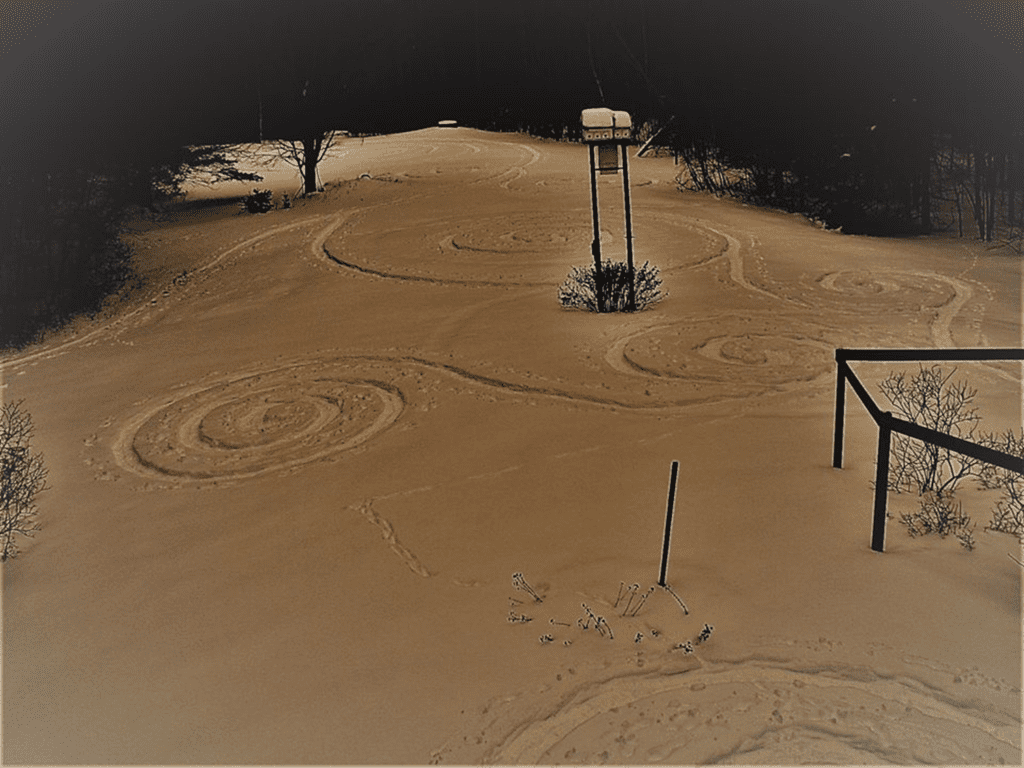 Maggy also leaves a special message in her yard for LifeFlight in the winter. The flight path to Farmington’s Franklin Memorial Hospital crosses right over her property, and every winter Maggy creates snowshoe Celtic spiral designs for the crew to enjoy from the air.